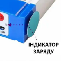 Показує на скільки підзаряджена ваша лампа. Зелене світло на 50%, жовте 40%, помаранчеве 10% заряду залишилось